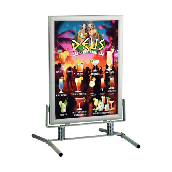 Stand από αλουμίνιο διπλής όψης, με ποδαράκια INOX και ελατήρια για μεγάλη αντοχή στον άερα.